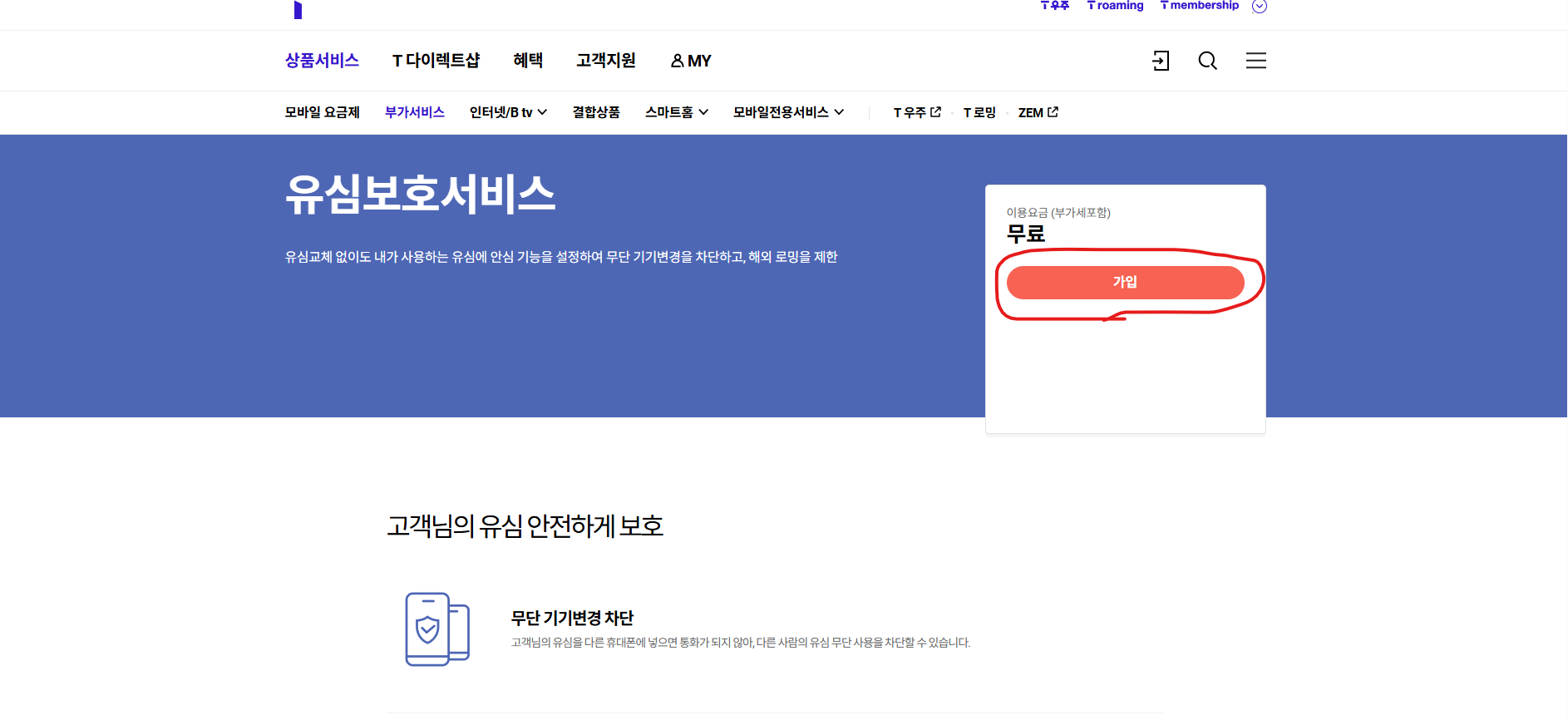 - 유심보호서비스 가입 시, 해외에서 음성, 문자, 데이터 이용이 불가합니다.